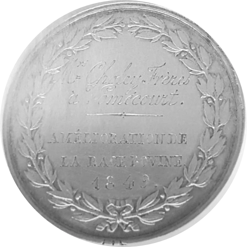 Médaille d’argent décernée en 1849 aux frères Choley de Vomécourt (Séraphin et Jean-Baptiste) pour « l’amélioration de la race bovine »